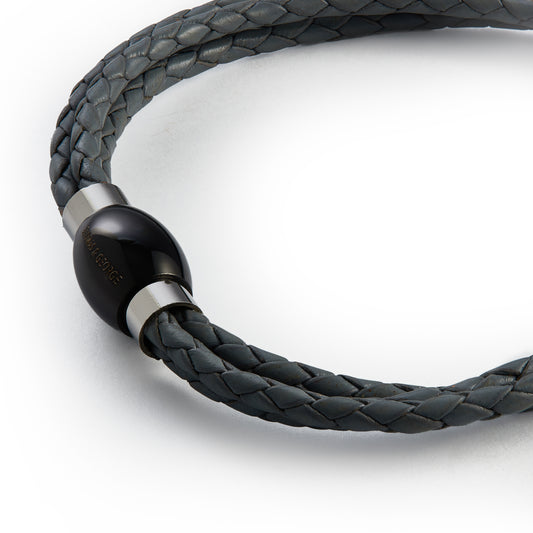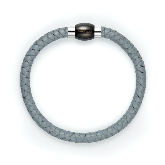 Thomas & George Grey Leather Bracelet - Round Braided Bolo