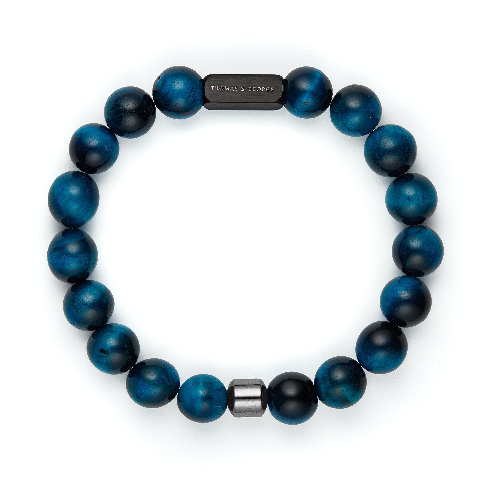 Thomas & George Men's 8mm Agate & Tiger Eye Bead Bracelet - Blue Effect